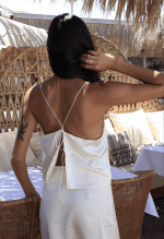 הגופיה הכי רומנטית ומדוייקת – גופיית חוטים מבד סאטן קשירה אחורית קלאסית