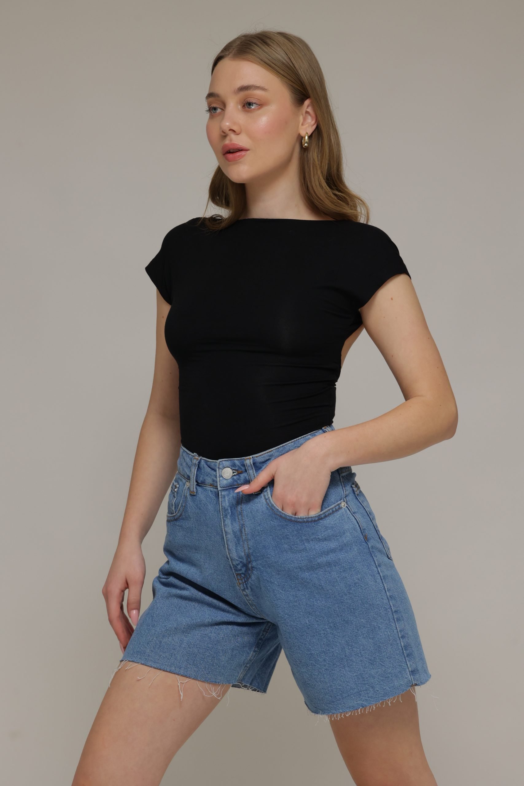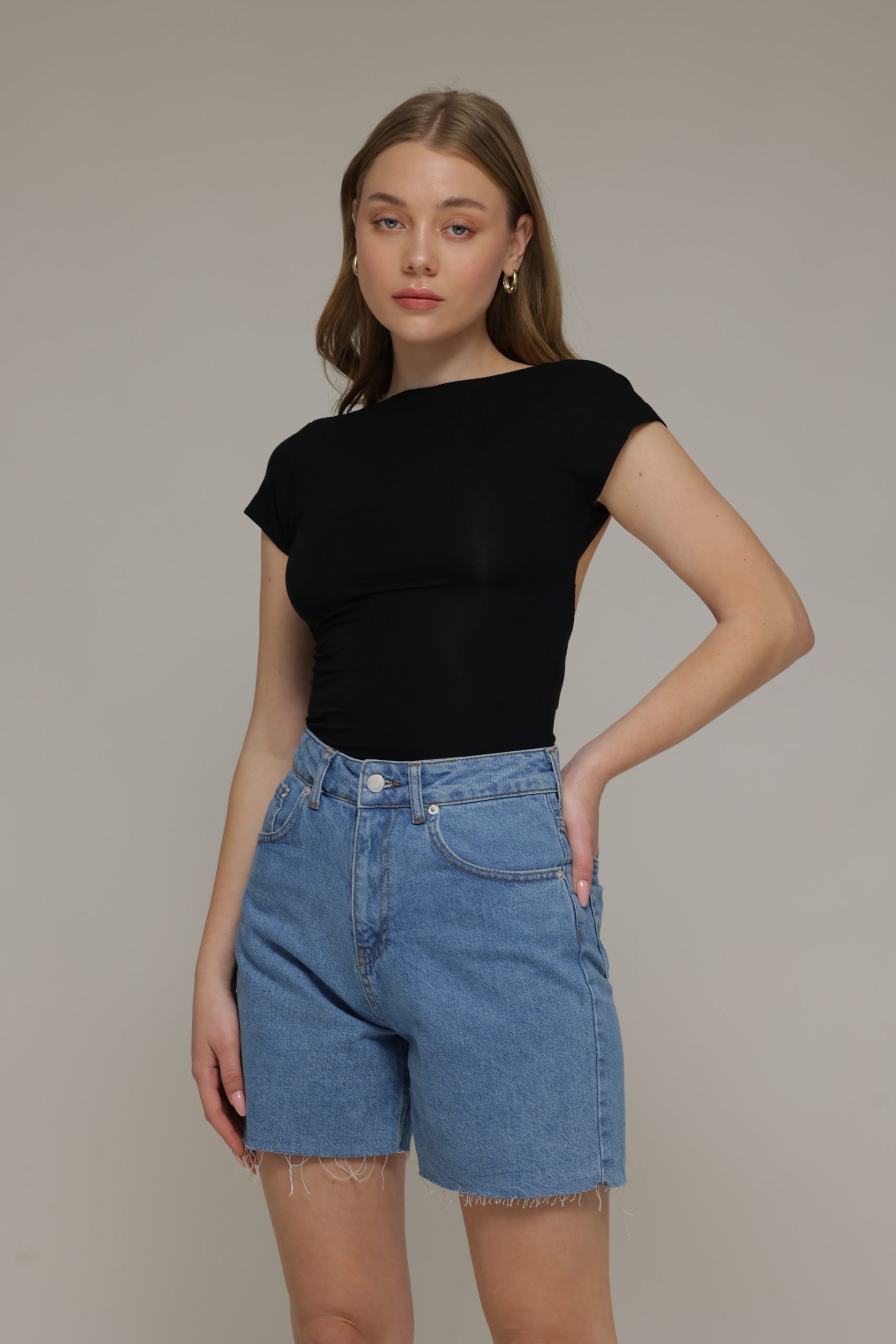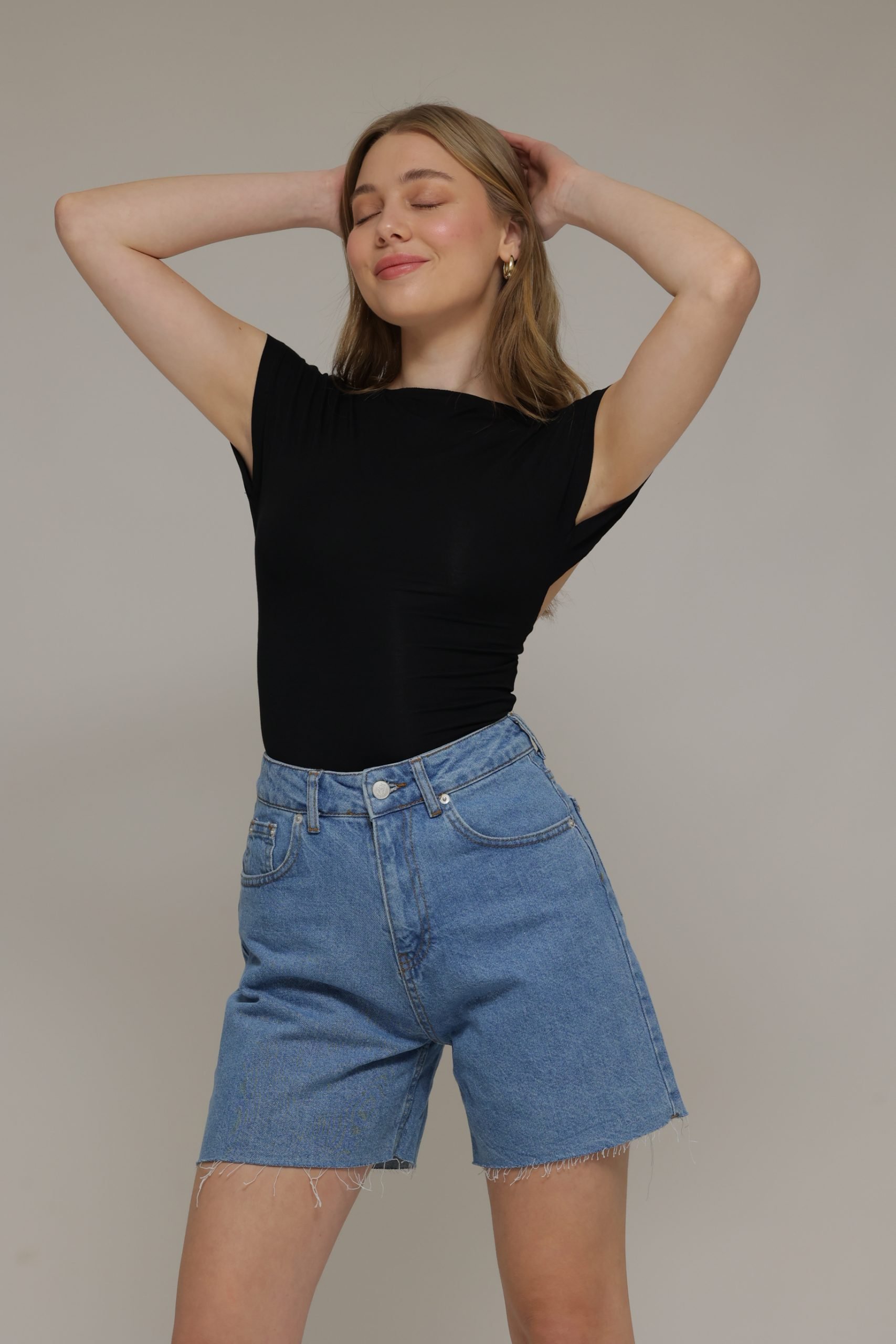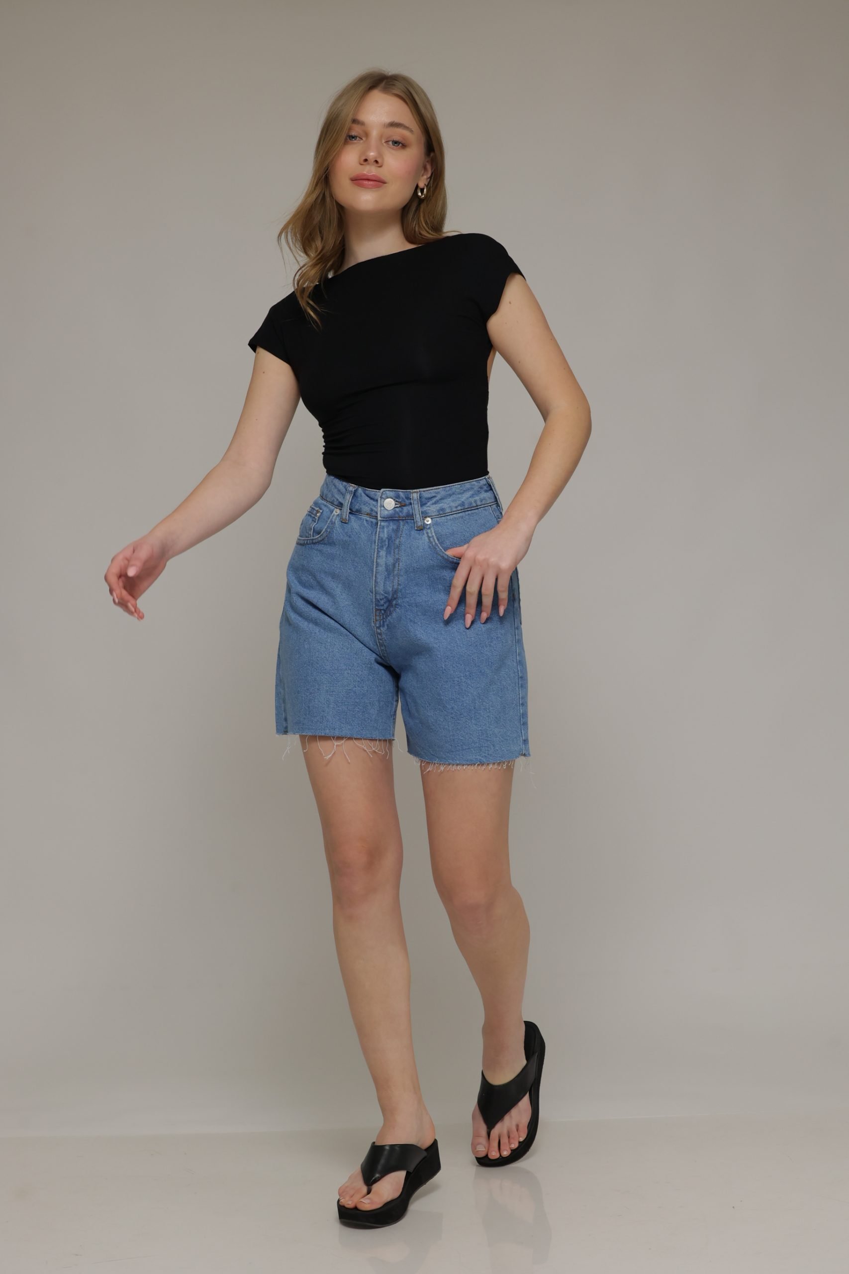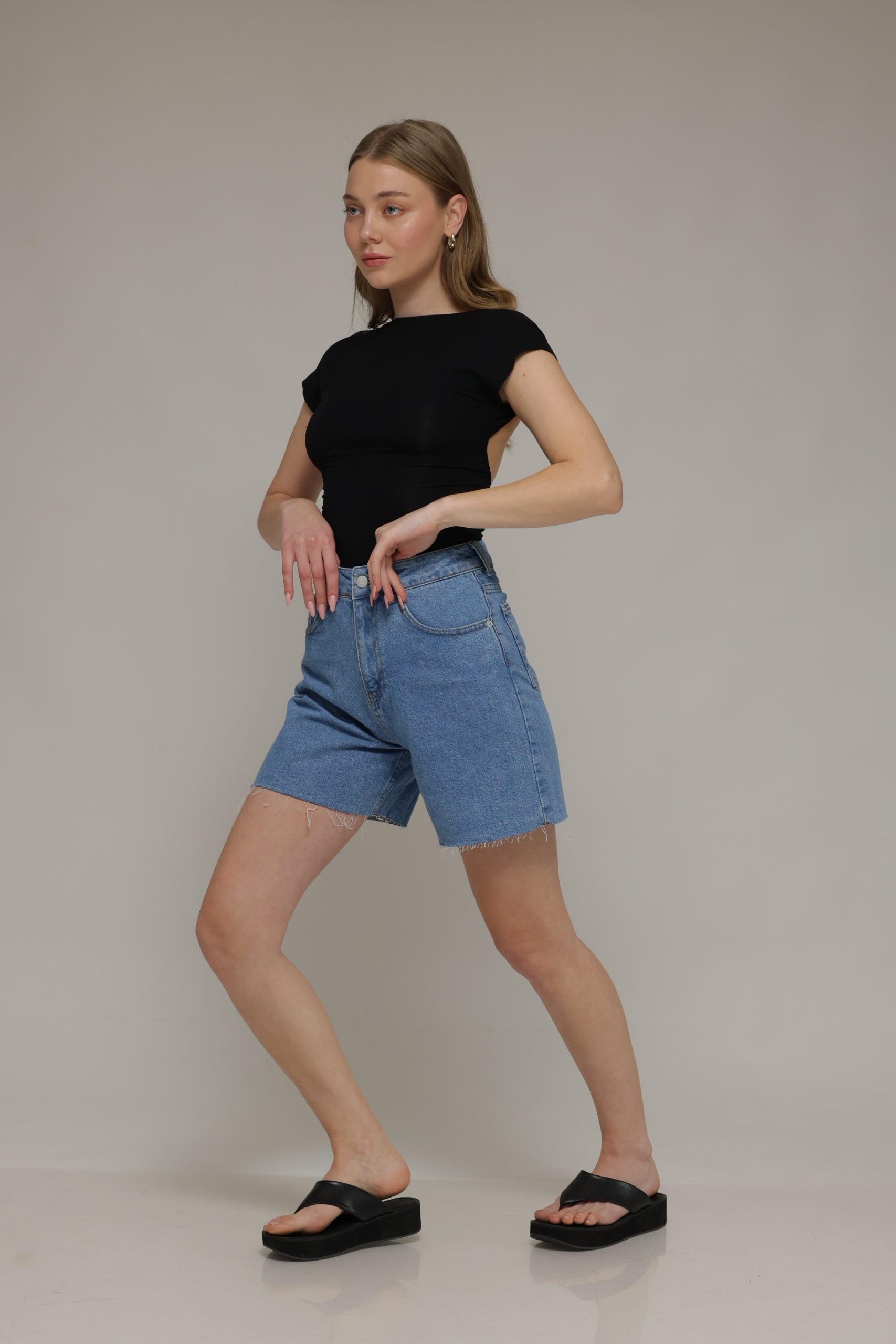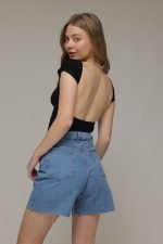 מכנסי ג'ינס קצרים בגזרת פייבפוקט