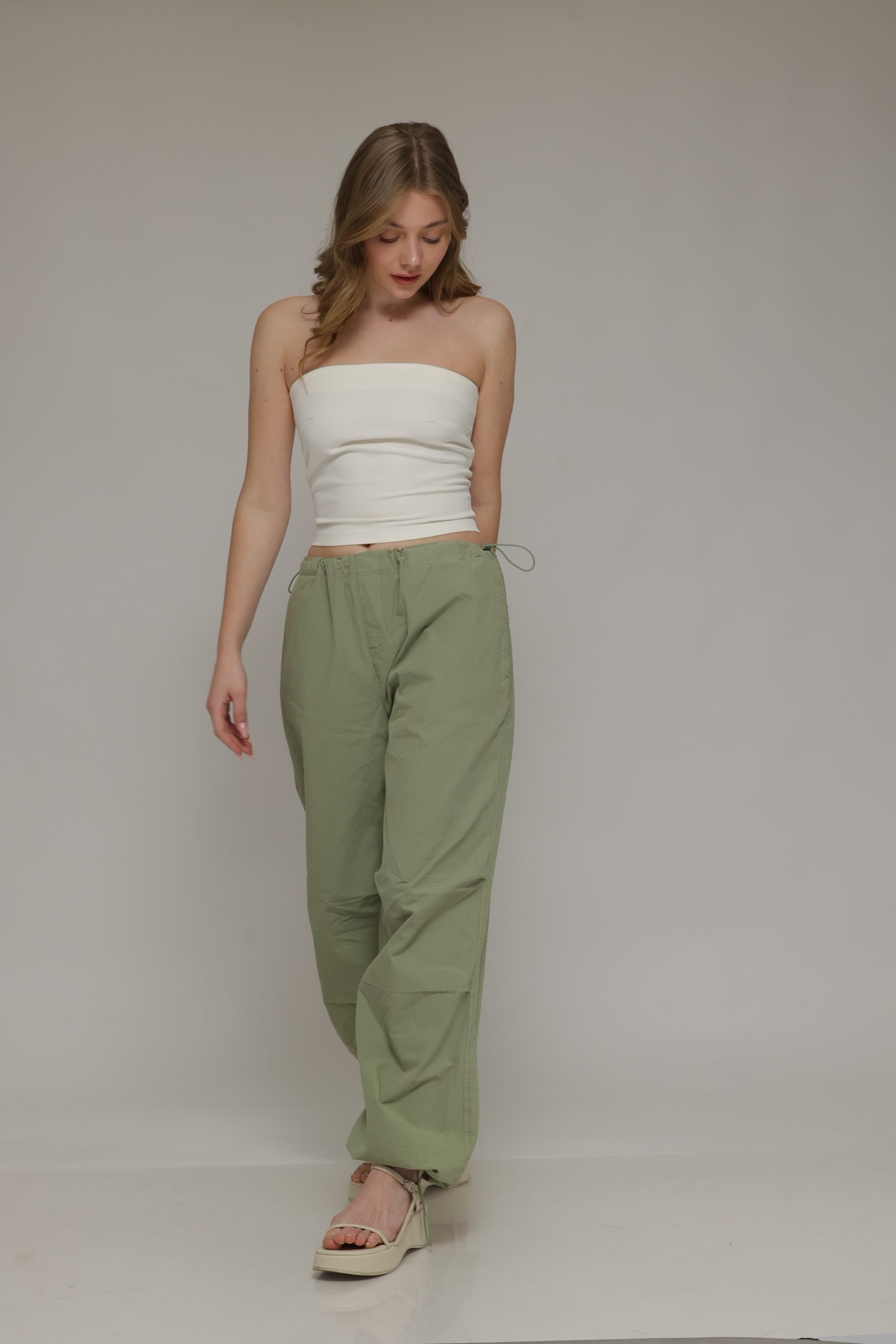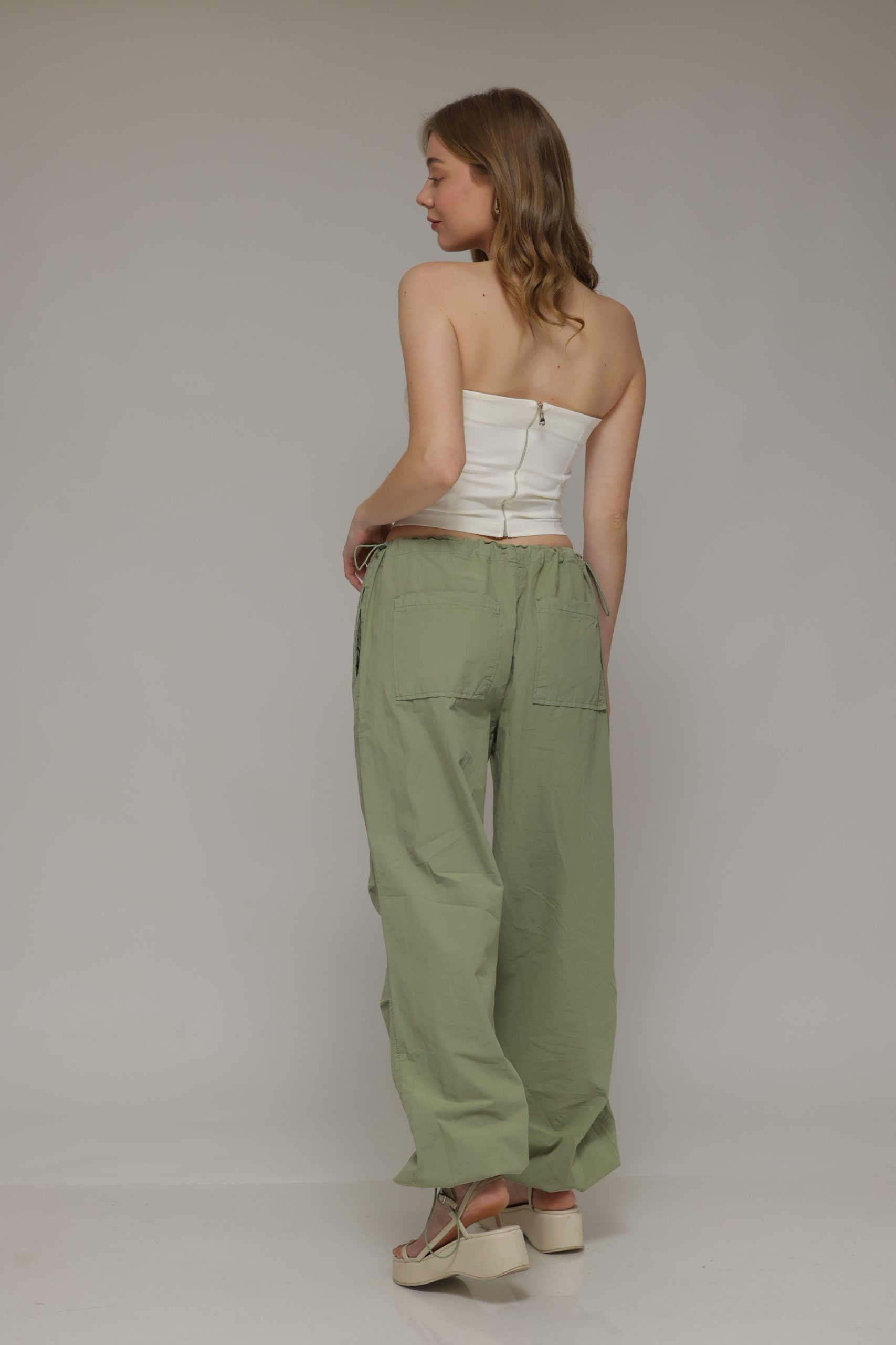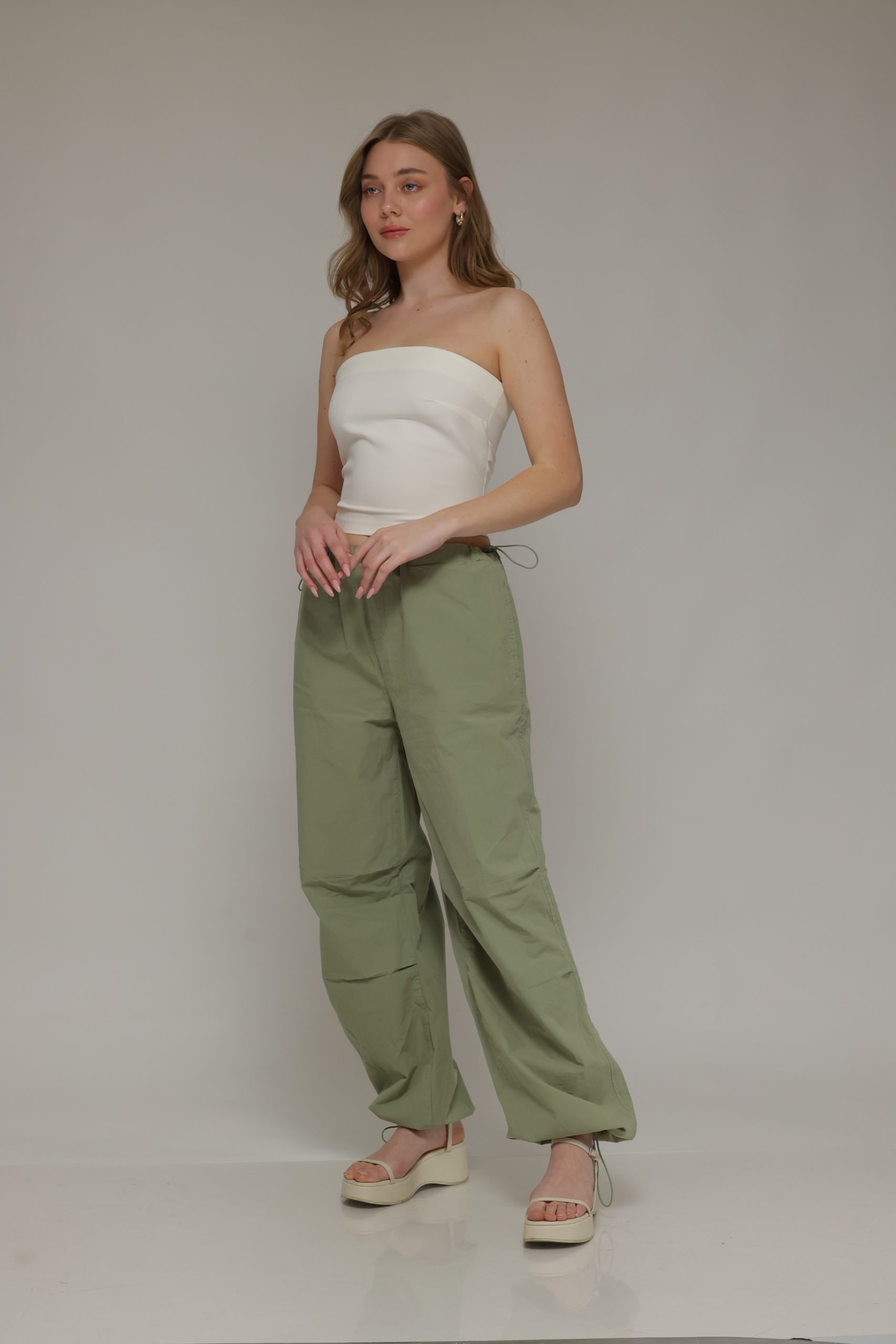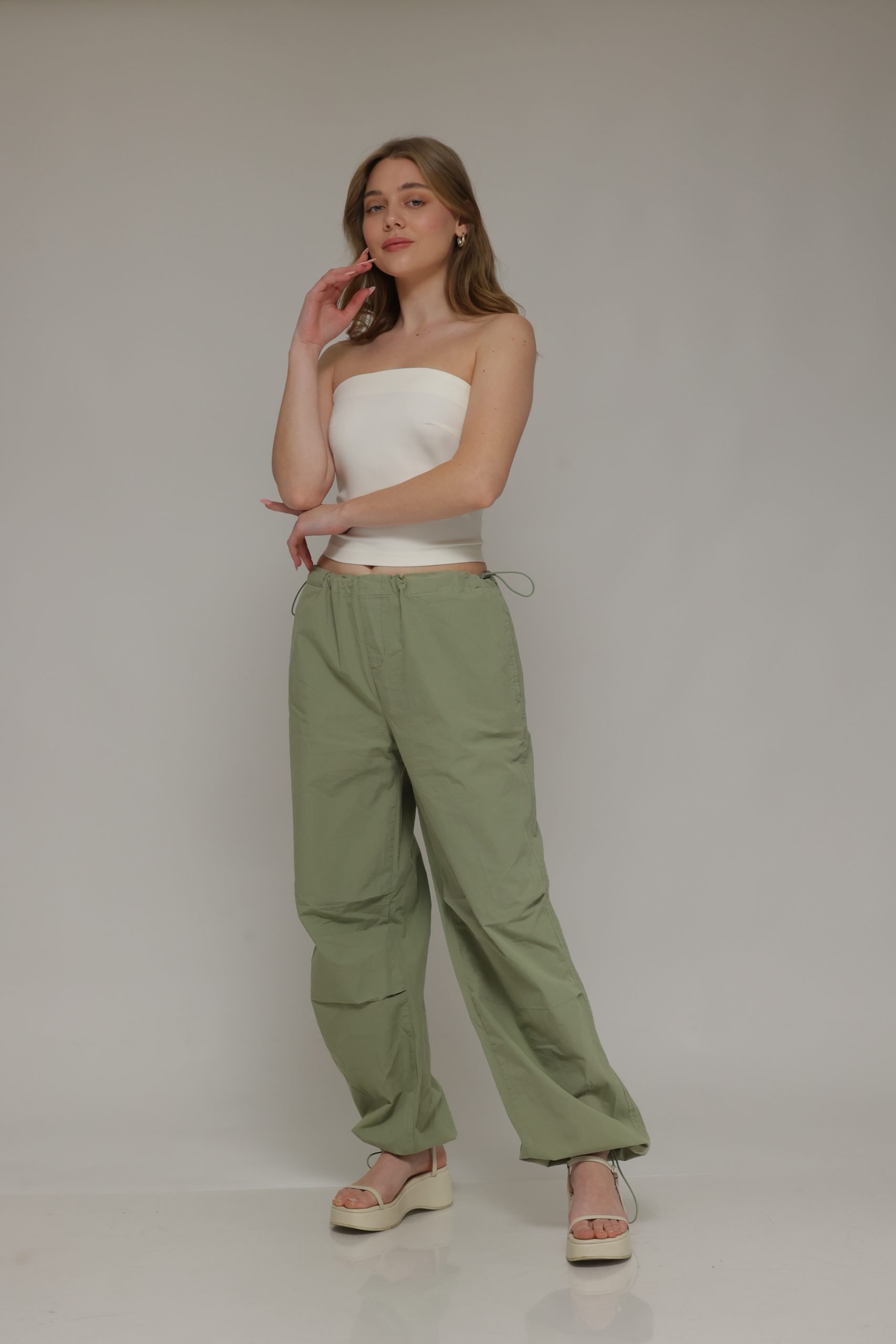 מוכנה למכנסיים שהם ה-טרנד החם של העונה? מכנסי דגמח מבד נעים בעלי כיסים מרובעים וקפלים בברכיים עם שרוך במותן להידוק וגומי במכפלת